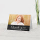 Écriture manuscrite blanche tendance Script Rustique Graduation Photo Carte de remerciements. Design par Elke Clarke © Visitez notre boutique www.zazzle.com/monogramgallery* pour plus de couleurs et de styles. Ajoutez votre propre photo et texte. Une simple typographie blanche manuscrite texte de police de script superpose sur un arrière - plan de tableau noir (effet photo imprimé) avec les mots "Merci". Remplacez l'exemple de photo par le vôtre.