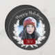 Envoyez vos voeux de vacances 2014 avec cette carte ronde en rouge, noir et blanc. Chalet de feuillage d'hiver | Carte photo de vacances. Elke Clarke© Plus de styles et de couleurs sont disponibles dans notre boutique à l'adresse www.zazzle.com/epclarke. Chalkboard est un effet photo imprimé.