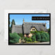 Carte postale d'un chalet de toit de chaume dans l'architecture typique de Cotswolds avec beau jardin à Chipping Campden, Angleterre, Royaume-Uni avec un cadre noir et le texte : 'Cotswolds'.
