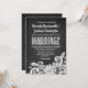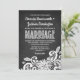 Chalkboard + Lace Rustic Wedding Invitations - présente un arrière - plan de tableau noir imprimé avec dentelle florale blanche au fond et des écritures de craie élégantes. Voir la collection complète ci-dessous