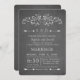 Un design mariage rustique avec une illustration décorative tourbillonnante et florissante, deux flèches de coeur, sur un arrière - plan de tableau noir. Utilisez l'outil Personnaliser pour ajouter vos informations. Pour en savoir plus, visitez ma collection de Mariages Chalkboard Flourish et Swirl.