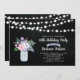 Célébrez votre journée spéciale avec cette élégante invitation d'anniversaire. Ce design comprend des lampes à cordes, des jarres de mason et un bouquet de fleurs avec un arrière - plan de tableau noir.