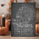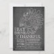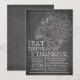 Commencez votre fête de Thanksgiving en plein air avec notre tableau moderne et amusant manger, boire et être reconnaissante de l'invitation de soirée d'action de grâces. Notre invitation élégante et branchée présente un énorme croquis d'une dinde dressé sur un arrière - plan de tableau noir contemporain et populaire. Retournez l'invitation pour trouver un arrière - plan correspondant pour une touche spéciale supplémentaire.