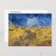 Carte postale d'art avec le tableau, Blé Field with Crows (1890), de l'artiste néerlandais Vincent van Gogh (1853-1890). Considéré comme sa dernière peinture, mais les historiens diffèrent sur ce point. Cette oeuvre représente un vaste champ de blé d'or sous un ciel turbulent rempli de corbeaux foncés et tourbillonnants, dont des couleurs intenses et des brosses. Les corbeaux de la peinture sont souvent interprétés comme des symboles de mort et d'avant-garde, ce qui a conduit à ce que la peinture soit considérée comme une expression de l'état émotionnel de Van Gogh à l'époque.