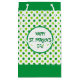 La chance des Irlandais est avec vous, avec ce motif de trèfle vert. Il y a un groupe vert foncé en haut et en bas de ce design. Le texte dit "Bonne Saint Patrick". Le texte peut être customisé.