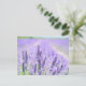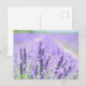 Cette carte postale présente une photo d'un champ de joli lavande violette.