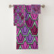 Cet ensemble de serviettes a un design art déco de tulipes de pentagones et trapézoïdes dans différentes nuances de violet.