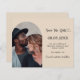 On front: Add your own vertical size photo inside the arch photo frame. A trendy champagne colored background, black text. Templates for names and the date. The name and the text: Save the Date are written with a modern hand lettered style script with a heart.