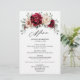 Elégant rouge Bourgogne, menu mariage à thème terreux en ivoire de Champagne avec élégant bouquet de Bourgogne, pivoines roses couleur ivoire et feuilles d'eucalyptus vert sauge. Veuillez me contacter pour toute aide sur la personnalisation ou si vous avez besoin d'un autre produit avec ce design.