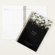 Un planificateur chic en noir riche avec une épine d'or présente une bordure supérieure de lumières lumineuses de bokeh dans les tons blanc et champagne. Personnalisez avec quatre lignes de texte personnalisé, faisant de ce planificateur un choix parfait pour les entreprises, les rendez-vous ou les tâches quotidiennes.