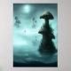 Le brouillard est posé sur l'océan des champignons. C'est un art généré par l'IA.