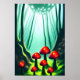 Un petit champignon rouge debout dans une petite ouverture dans la forêt avec un arbre dans l'arrière - plan. C'est un art généré par l'IA.