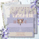 Lavender Fields of Blue Western Faire-part de mariage est un faire-part de mariage romantique aux tons pastel blues et lavandes avec une invitation de style occidental et une suite de papeterie. Le Front dispose d'un arrière - plan de style occidental bleu ciel pastel avec une invitation personnalisable dans les polices de style occidental moderne. Top of card est doté d'un logo de style occidental prêt à customiser avec vos propres marques initiales. L'arrière de la carte est orné d'un ciel bleu pastel et d'une belle aquarelle motif avec des fleurs de lavande botanique. Combinez cette belle Lavender Fields of Blue Western Faire-part de mariage avec la belle enveloppe de coordination, rsvp et les cartes de détails de boîtier pour une suite de faire-part de mariage occidentales romantique mémorable. Consultez notre collection de Mariages occidentaux Lavender Fields pour plus d'idées de papeterie, de table et de réception pour compléter votre journée spéciale.