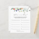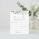Carte de jeu de douche nuptiale avec cascade d'aquarelle de fleurs sauvages. Une façon amusante d'interagir avec les clients de douche. COMMENT JOUER : Affichez les photos de la Mariée et de la Salle prises à différents endroits et numérotez-les 1-10. Demandez aux clients d'écrire leurs devis sur chaque photo. La personne avec les réponses les plus correctes gagne !