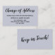 Gardez vos amis et votre famille à jour avec votre nouvelle adresse en utilisant ces cartes d'enceinte simples et élégantes. Les notes versatiles lisent "Changement d'adresse" sur le devant et "Restez en contact !" sur le dos, en utilisant une police de caractères manuscrite moderne, audacieuse. Utilisez les champs modèle pour ajouter tous vos propres détails afin de customiser ce design pour votre usage personnel. Toutes les polices et les couleurs peuvent être changées à votre gré, faites de ces cartes les vôtres !