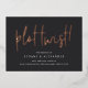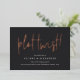 Besoin de changer la date de votre mariage ? Informez vos invités avec cette carte moderne et légère qui présente "changement de programme !" en lettrage manuscrit à l'encre dorée rose sur un fond noir riche et doux. Personnalisez avec vos noms et la nouvelle date de mariage en dessous en lettrage blanc.