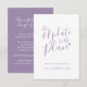 Mise à jour du plan carte d'annulation de mariage fait partie de l'ensemble de mariage simple typographique cœur violet gris blanc assorti. Idéal pour informer vos invités d'une annulation ou d'un reprogrammation de mariage ou d'événement. D'autres options de couleur sont disponibles, cette version est livrée avec des enveloppes. Conception originale de Sarah Trett pour www.mylittleedenweddings.com sur Zazzle.