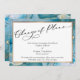 Si vos plans de mariage ont inévitablement changé, cette carte artistique pourrait être l'option unique pour vous. Caractérisé par une police de calligraphie luxueuse, l'en-tête indique "Changement de plans". La bordure avant et l'arrière de la carte sont recouverts d'un morceau de mon "art liquide" abstrait présentant une technique obtenue en utilisant des "encres alcooliques" teal accentuées de doré métallisé. Le style est parfois confondu avec l'aquarelle. Les détails avant sont également compensés par une double bordure dorée recouvrant un rectangle blanc. Utilisez les champs de modèle pour ajouter vos informations personnelles. // 137 //