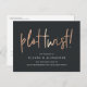 Besoin de changer la date de votre mariage ? Informez vos invités avec cette carte postale moderne et légère, dotée de « changement de programme ! » en lettrage manuscrit imitant le cuivre sur un fond noir riche et doux. Personnalisez avec vos noms et la nouvelle date de mariage en dessous en lettrage blanc.