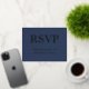 Cette Song Choice Navy Blue Classic Foil RSVP Card est facile à personnaliser avec les noms du couple mariage sur le devant et la date de réponse au dos, en utilisant le modèle de personnalisation en ligne avant de commander. L'avant de la carte présente un beau papier métallique sur un arrière - plan bleu marine, tandis que l'arrière de la carte comporte de l'encre noire sur un arrière - plan blanc.