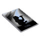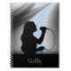 Beau look d'un chanteur aux cheveux longs contre un arrière - plan fantastique en argent et bleu. Personnaliser avec le nom