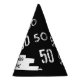 Célébrez avec des fournitures personnalisées de fête du 50e anniversaire. Casquettes de papier noir et blanc avec un motif de 50 chiffres et votre message personnalisé.