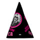 Bright add your own photo and name party hat. Ideal for a special ladies 80th birthday party celebration to add to decoration to your tables or to add a fun when having a surprise birthday girls entrance. Colorful hot pinks on black design. Background color can also be changed for your own choice currently black. Original graphic art and design by Sarah Trett for www.mylittleeden.com