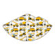 Casquettes de la fête d'anniversaire de construction avec un simple arrière - plan blanc, avec de jolies illustrations de dessins animés de bunting, des panneaux d'arrêt, un camion à benne, une crevette, une grue à bille en ruines, et des éclats de saleté.