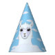 Beau casquette de fête en papier avec un magnifique dessin en lama et motif cloud sur arrière - plan bleu clair.