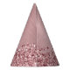 Easily personalize this trendy chic paper party hat design featuring pretty blush pink sparkling glitter on a blush pink brushed metallic background.