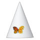 Orange, detailed monarch butterfly with wing decorated with yellow, vibrant California poppy on white background.