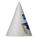 Casquette de la fête de graduation, avec des graphiques d'un arrière - plan texturé blanc, avec un casquette en carton bleu et or diplômés, sur le devant. Les numéros bleus gras, sur le devant, indiquent l'année de graduation, personnalisent cette année pour répondre aux besoins de votre fête de graduation.