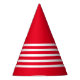 Rouge avec des rayures blanches clown casquette de cornet de fête d'anniversaire papier. Simple et mignon cerise rouge et blanc éclatant thème de fête.
