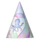 Casquettes de la fête du papier d'anniversaire sur le thème nautique avec des illustrations du fond marin, une pieuvre mignonne, une adorable méduse et une queue magique de sirène.