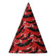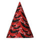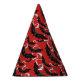 Le casquette de fête est affiché en rouge avec une impression éffrayante de chauves-souris d'Halloween. Customisez cet objet ou achetez tel quel.