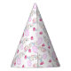 Le design est composé d'un motif répétitif de têtes de licorne majestueuses, aux formes pastel fluides, dans les tons rose, bleu et jaune. Les licornes ont des yeux expressifs et des cornes dorées, ajoutant à leur charme magique. Autour d'eux sont roses douces, des nuages tourbillonnant et des paires de coeurs roses brillants, le tout dressé contre un arrière - plan blanc. La combinaison crée un rêve.