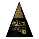 C'est le casquette de fête de la saison en noir et or avec texte typographique, flocons de neige dorés et un arbre tourbillon de vacances en or.