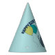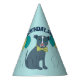 Jetez une fête d'anniversaire sur le thème du chien avec ces accessoires personnalisés. Ces casquettes de fête en papier sont prêts à être customisés avec votre message et présentent une illustration d'un pit bull chiot portant des lunettes et une cravate arc entourée de ballons de fête.