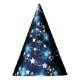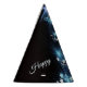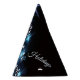 Christmas Party Blue Tree Shiny Black Elegant Party Hat. Unique, beautiful, stylish design. Easy to be personalized. Font style, size and colors can be changed. Matching items are available.