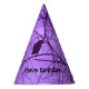 Ce casquette de fête en papier personnalisé a une silhouette de corneille noire assise dans des branches de stériles noirs contre un ciel violet. Customisez le texte Joyeux anniversaire avec le modèle.