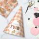 Make your baby's 2nd birthday party unforgettable with this adorable "Cutie Pie" pumpkin themed party hat. Features a peach orange gingham plaid color palette. It’s time for a sweet second birthday celebration! Perfect for an autumn, pumpkin, or Thanksgiving theme birthday. You can personalize this design by clicking on "Personalize this template" or if you wish to change the font, colors or arrange the design elements in a different way you can click on "Edit using Design Tool".
