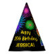 Ces amusement, caractéristiques de conception vibrantes de casquette de fête d'anniversaire un motif coloré inspiré en éclatant les feux d'artifice de célébration, avec le nombre "25" comportant un spectre ou un motif de gradient inspiré par arc-en-ciel multicolore. Il comporte également un nom et un message personnalisés d'événement, tel qu'une salutation d'anniversaire de "joyeux anniversaire". Un casquette de papier anniversaire-orienté comme ceci pourrait être utilisé par les invités à une fête d'anniversaire étant tenue pour célébrer quelqu'un le vingt-cinquième anniversaire. [~Z0000333]