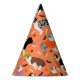 Chiens de berger australiens d'Halloween mignons en costumes éffrayants. Les chiens australiens avec plusieurs couleurs de manteau tiennent des citrouilles de tour ou de traitement, portent des casquettes sorciers et des chandails avec des chauves-souris éparpillées, des pattes et des os de chien.