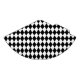 This party hat is shown in a black and white color harlequin diamond pattern.