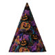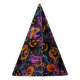 This party hat is shown in a colorful spooky Halloween characters print.