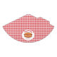 Le fast-food de Destei illustre un petit pain de hot dog avec une saucisse grillée avec du ketchup et de la moutarde sur le dessus. L'arrière - plan a une couleur rouge et blanche en vichy motif. Il y a aussi deux zones de texte personnalisables.