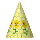 Ce magnifique casquette de fête présente une image graphique d'un joli bourdon jaune avec des rayures noires, des yeux, des antennes et des jambes. Il possède de jolies ailes bleues et blanches. L'abeille est assise au milieu d'un tournesol jaune doré. La fleur a une tige verte et trois feuilles. Le message "happy bee day" (Jour heureux des abeilles) apparaît sur les trois feuilles. L'arrière - plan est composé d'un motif jaune peigne.