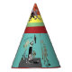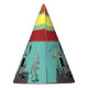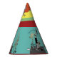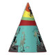 Un petit chapeau de fête charmant conçu avec des éléments classiques et des couleurs rouge sarcelle et jaune