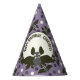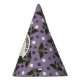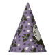 Top des fêtes d'anniversaire sur le thème des chauves-souris et des fêtes d'Halloween en style avec ces casquettes amusants de fête de papier. Ils présentent un motif de chauves-souris et de pois de dessins animés contre un arrière - plan violet fumé et votre propre message personnalisé.