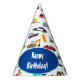Célébrez l'anniversaire de votre petit garçon avec un motif personnalisé de certains de ses véhicules préférés — camions de pompiers, voitures de police, hélicoptères et avions, trains, taxis, véhicules de construction, et plus encore ! Ce casquette de fête en papier amusant ajoute une touche personnalisée supplémentaire à la fête d'anniversaire de votre petit. Ajoutez Happy Birthday ou texte de votre choix sur le dessus de l'arrière - plan bleu.